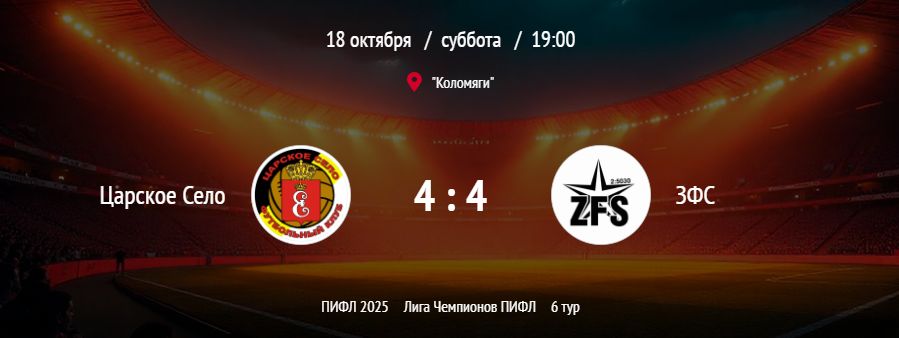 В прошедшую субботу футболисты «Царского Села» сыграли свой заключительный матч в рамках чемпионата ПИФЛ-2025. Соперниками в котором выступили соседи по таблице из коллектива ЗФС. Обе команды ещё не потеряли шансы подняться повыше, а значит, нас ожидал бескомпромиссный поединок. Таким он и получился!